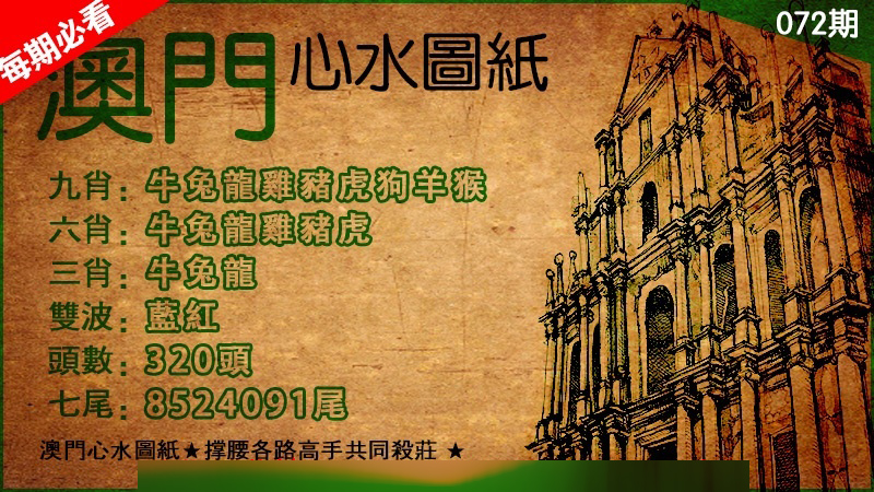 072期八肖:牛龙鸡马猴蛇虎猪